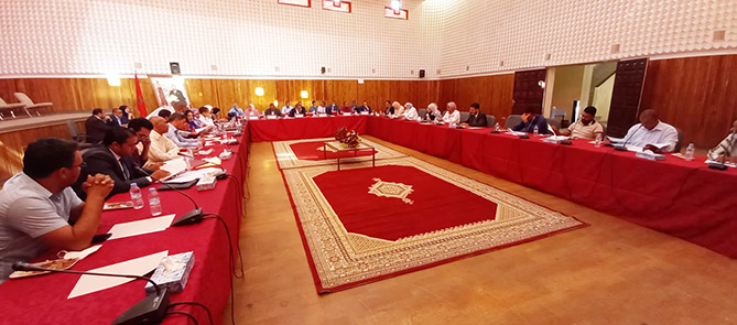 عقد المجلس الجماعي لورزازات يوم الجمعة 1 أكتوبر 2021، على الساعة العاشرة صباحا بقاعة الاجتماعات بالجماعة دورة استثنائية، تحت الرئاسة الفعلية للسيد عبد الله حنتي رئيس المجلس حيت - بعد قراءة الفاتحة جماعة ترحما على روح الفقيدة صاحبة السمو الملكي الأميرة الجليلة للا مليكة، عمة صاحب الجلالة الملك محمد السادس نصره الله - تم خلالها التداول في شأن نقطة فريدة تهم الدراسة و المصادقة على مشروع النظام الداخلي للمجلس، و الذي يحدد شروط وكيفيات تسيير أشغال المجلس وأجهزته المساعدة، حيت تمت المصادقة عليه بإجماع العضوات و الاعضاء الحاضرين.