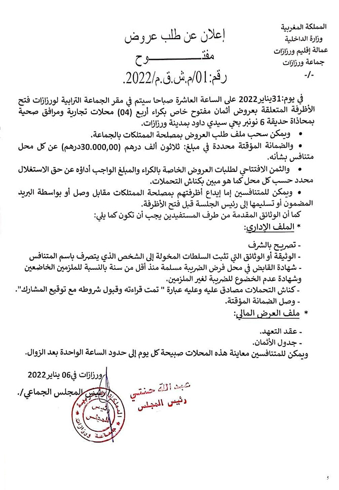 إعلان عن طلب عروض مفتـوح